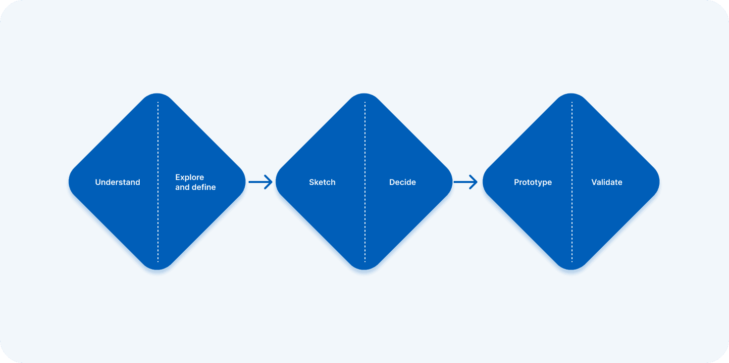 We followed the GDS framework through Discovery, Alpha, and Beta, aligning each phase with the diagram’s flow from understanding user needs to validating solutions. This approach helped us rapidly explore, prototype, and test ideas while staying user-focused and outcome-driven.