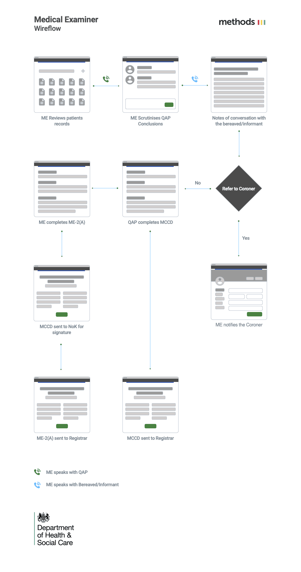 To address the evolving needs of the UK's death certification process, the Department of Health and Social Care (DHSC) sought to modernise the Medical Examiner programme, I was tasked with designing and implementing a digital service that would streamline and enhance the existing manual processes.