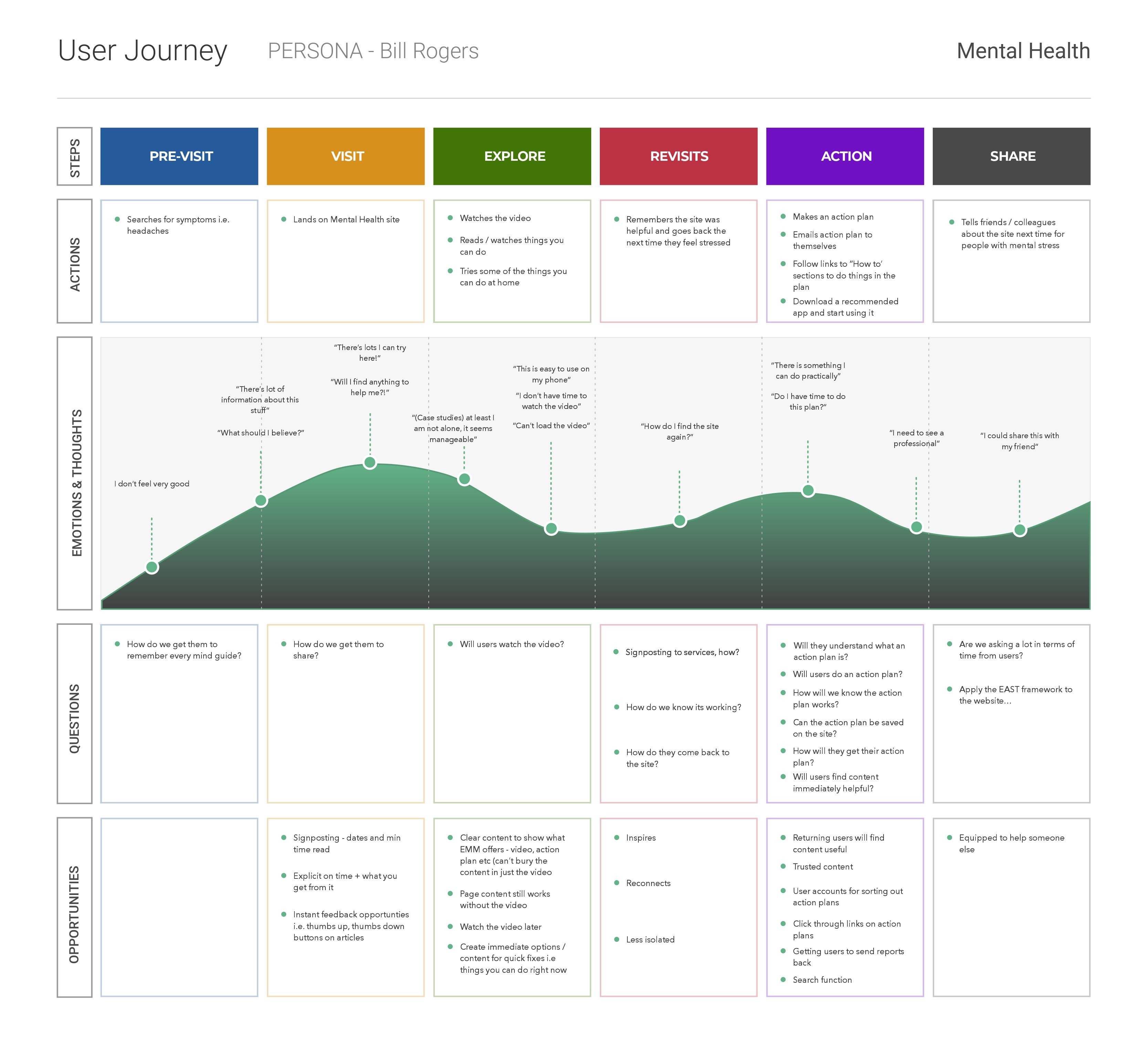 • A journey map surfacing user frustrations, emotions, and key opportunities.
